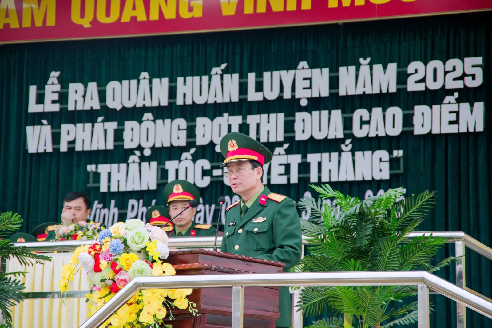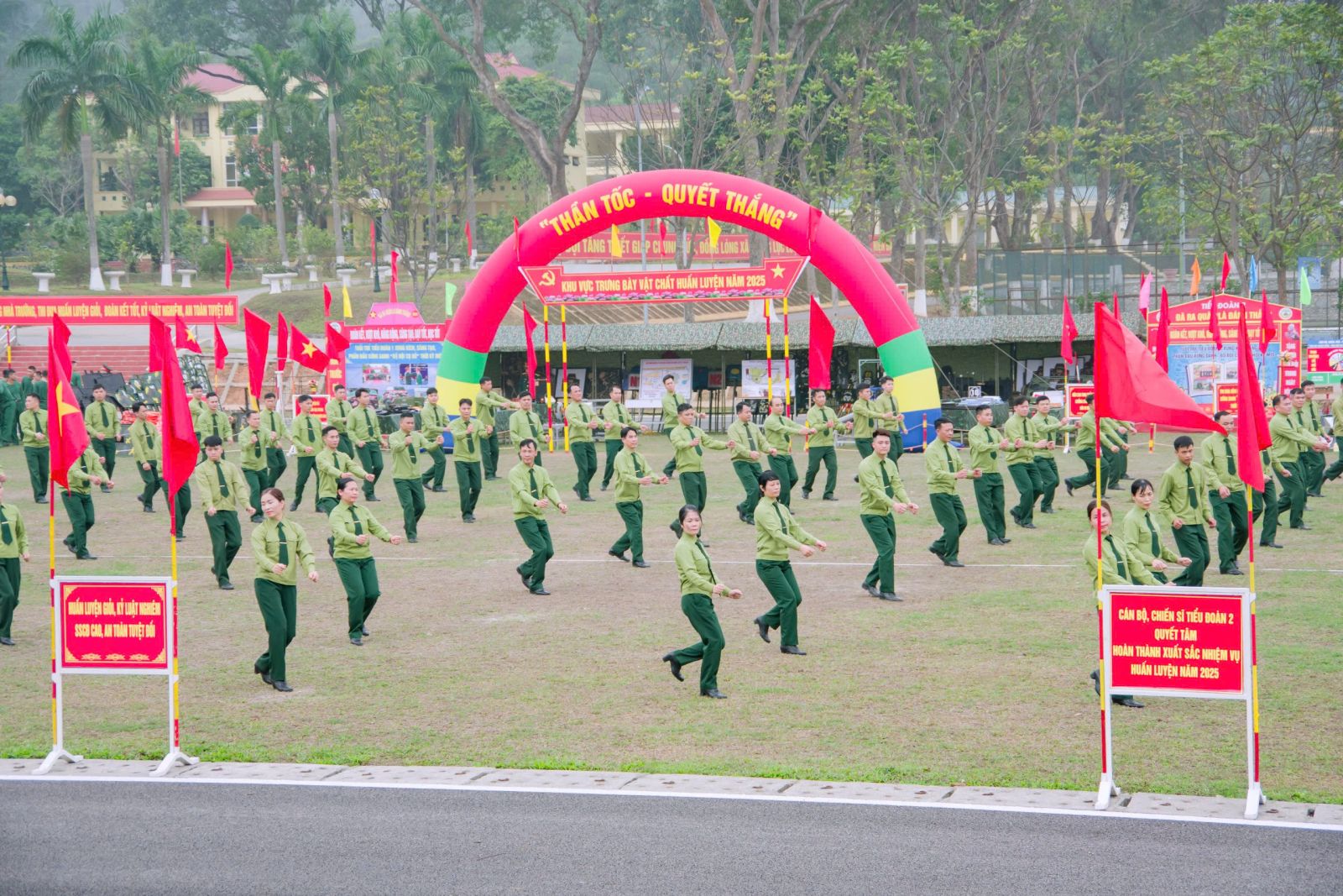 Cũng trong buổi Lễ ra quân huấn luyện, Đại tá Phan Đăng Minh, Chính ủy, Chủ tịch Hội đồng Thi đua - Khen thưởng Nhà trường đã phát động đợt thi đua cao điểm chào mừng kỷ niệm 50 năm Ngày giải phóng miền Nam, thống nhất đất nước, 135 năm Ngày sinh Chủ tịch Hồ Chí Minh với chủ đề: “Thần tốc - Quyết thắng” phong trào thi đua trong huấn luyện năm 2025 với chủ đề “Huấn luyện giỏi, kỷ luật nghiêm, SSCĐ cao, an toàn tuyệt đối”.
